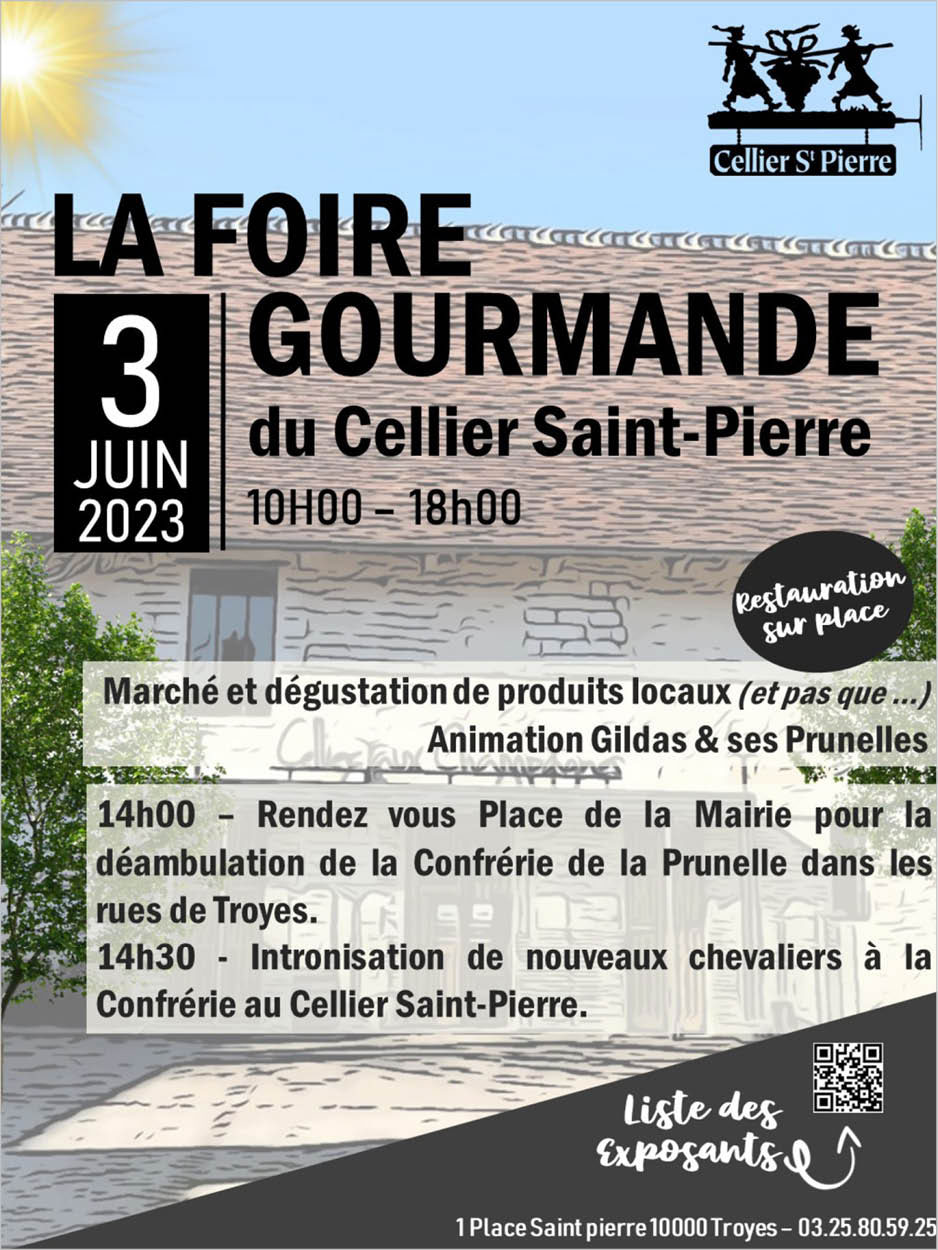La foire gourmande du Cellier St Pierre Voir le programme Tags : Acceuil Share : PreviousQuand la prunelle de Troyes rencontre le champagne NextLe Cellier Saint-pierre fait son cinéma